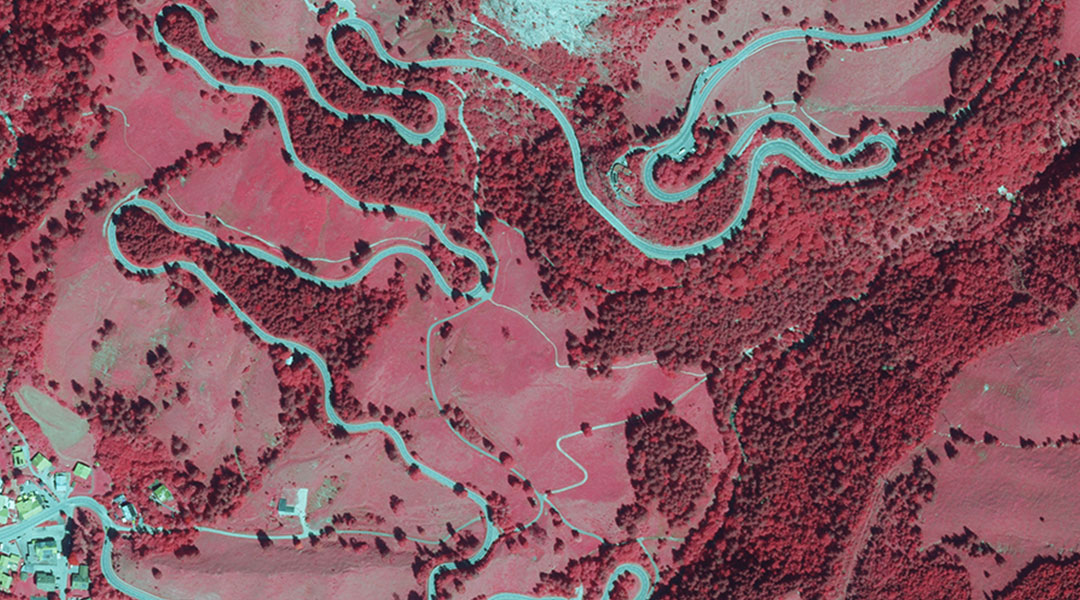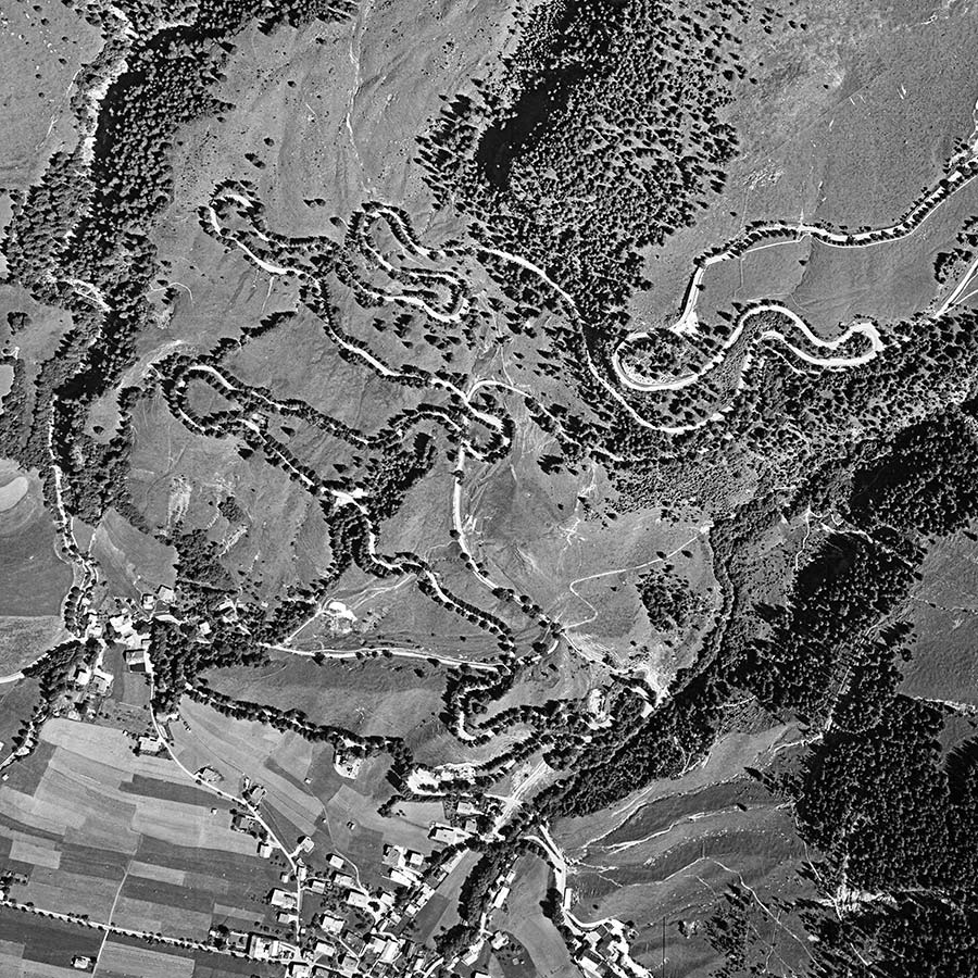 Auf den Luftbildern der Bayerischen Vermessungsverwaltung wird der meist sehr kurvenreiche Verlauf der Passstraßen besonders gut sichtbar und es wird deutlich, wie die Straßen den natürlichen Konturen der Berge folgen. Unsere Beispiele zeigen den Achenpass und den Oberjochpass.